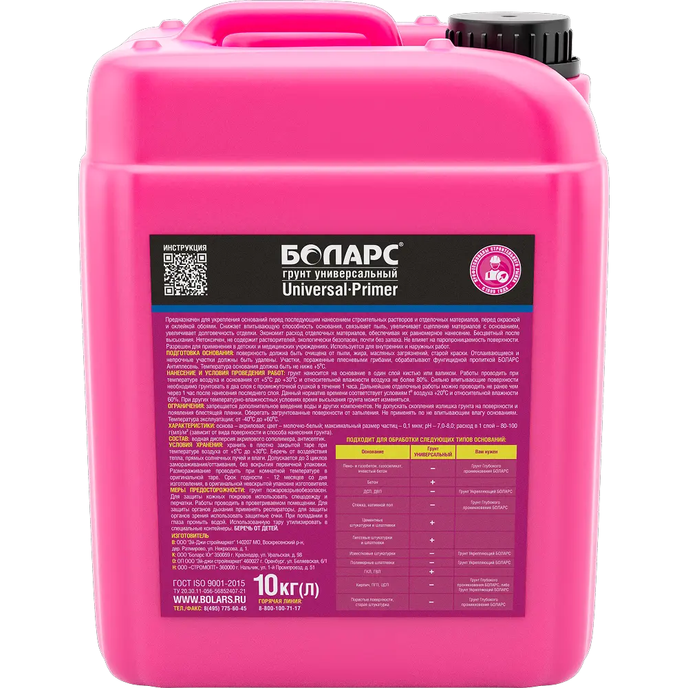 Выбирая грунт Universal Primer (55) 10 кг от Боларс, вы можете быть уверены в качестве и надежности вашей отделки на долгие годы.
