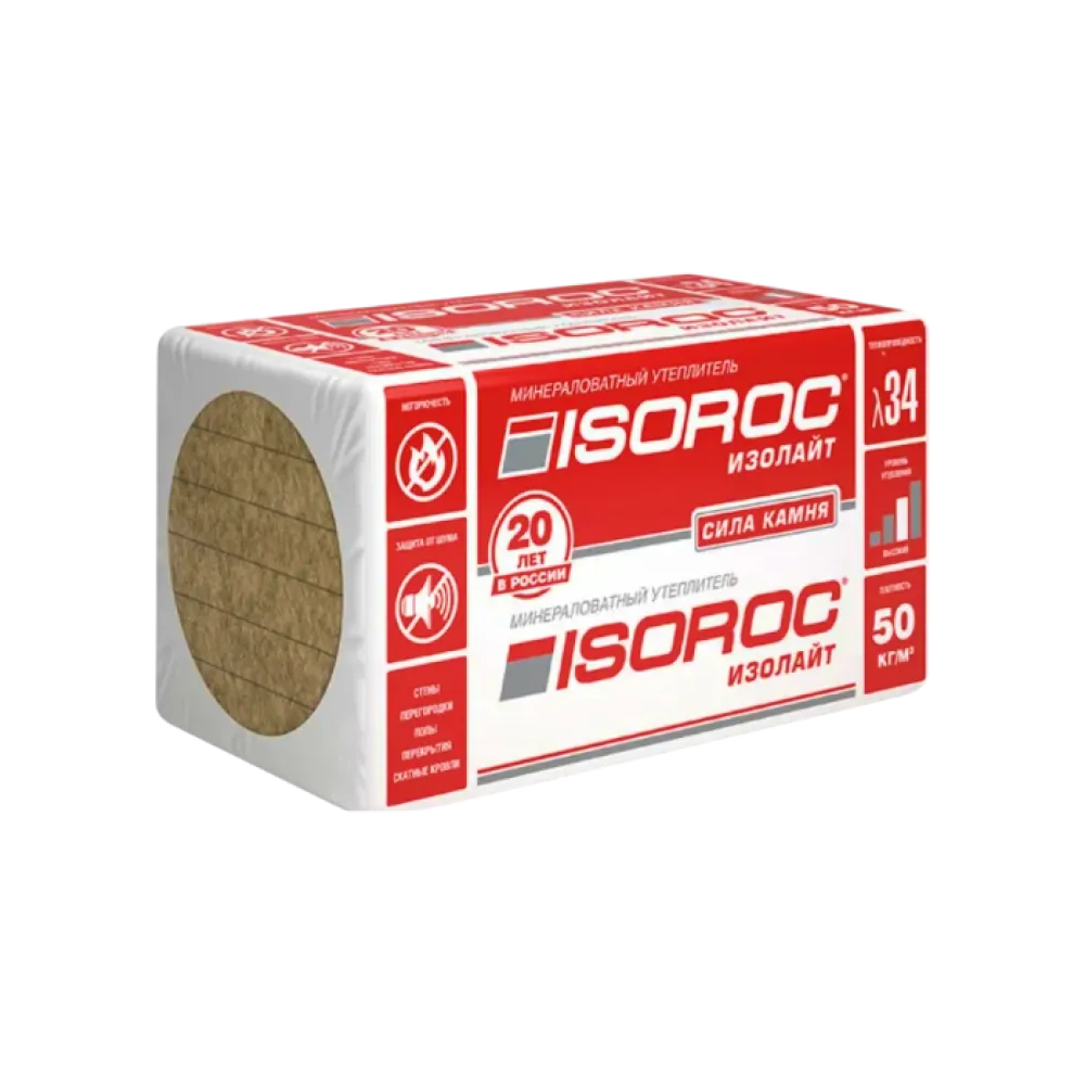 Утеплитель ISOROC Изорок Изолайт (50кг/м3) 1000х600, 100 мм 4пл/2,4м2 0,24м3 купить в Москве