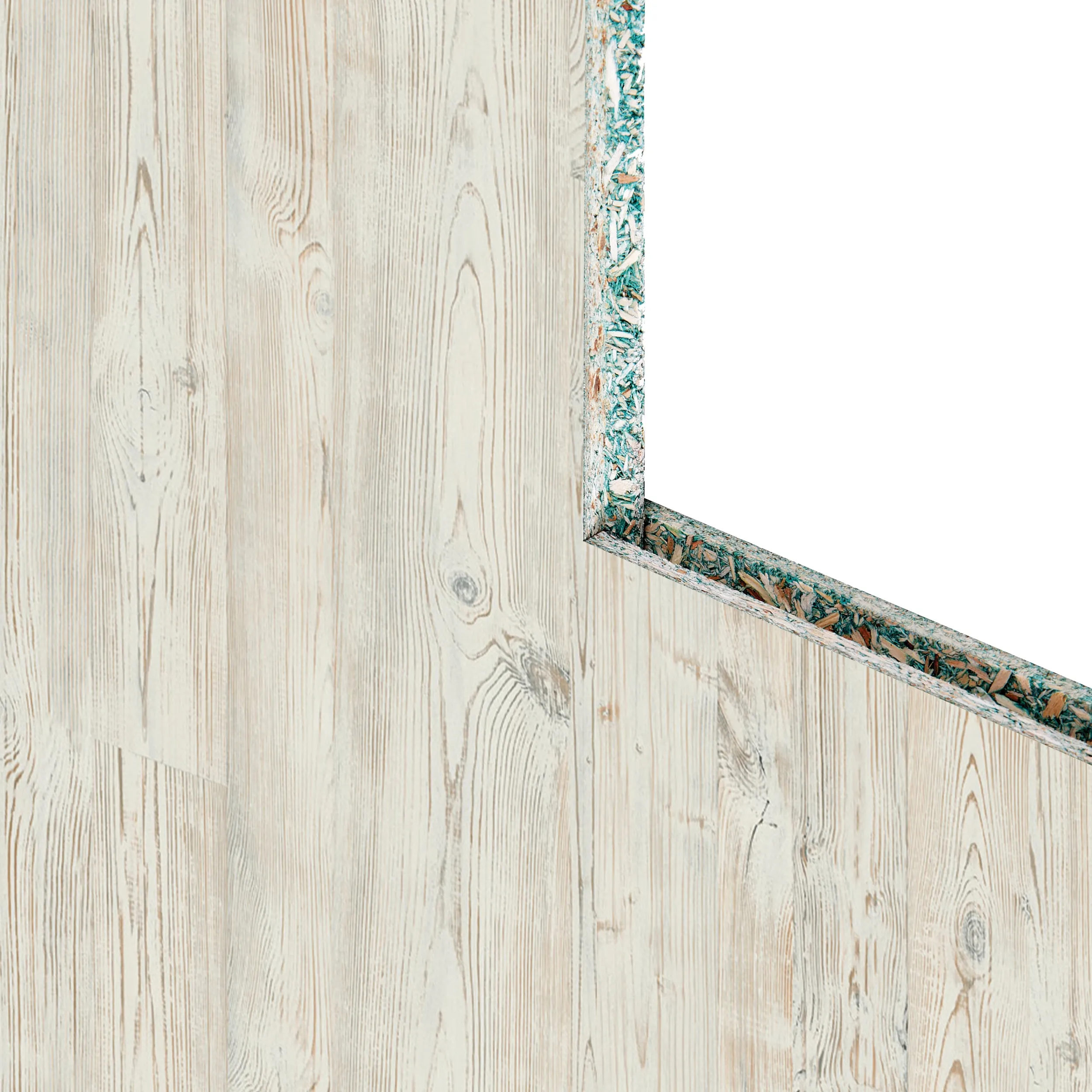 Данная композиция сформирована из досок сосны разной ширины, которые синтезируют яркую динамику и ритм, примыкая друг к другу. Визуальный эффект растрескивания усиливает естественный вид декора. В данной светлой гамме видны цветовые контрасты в сочетании теплых и холодных оттенков. Ламинированные плиты Квик Дек Наоми 1200х900х22 мм. встроенные в дизайн скромно уйдут на второй план, но вместе с этим они синтезируют основу под индивидуальный и необычный интерьер.