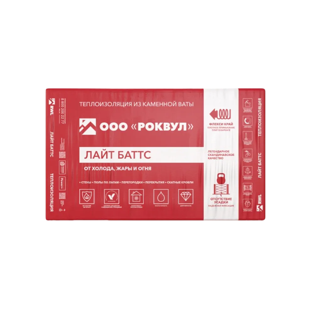 ROCKWOOL ЛАЙТ БАТТС® с технологией Флекси – лёгкие гидрофобизированные теплоизоляционные плиты, изготовленные из каменной ваты на основе базальтовых пород.